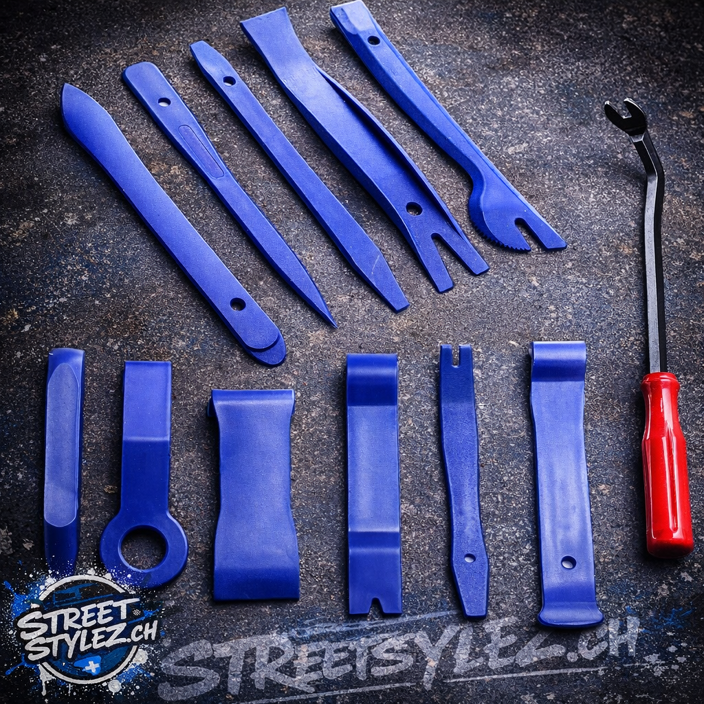 We use this exact set regularly in our own installation service, because it works reliably and leaves no marks on painted, glossy or sensitive surfaces. Thanks to the different shapes, modern clip-mounted trims can be removed quickly, safely and reused without issues.