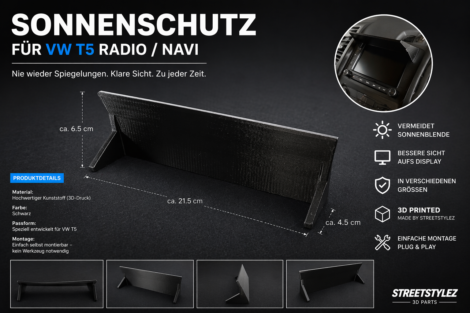 Sunshade for VW T5 Radio / Navigation – Anti-Glare Display Cover